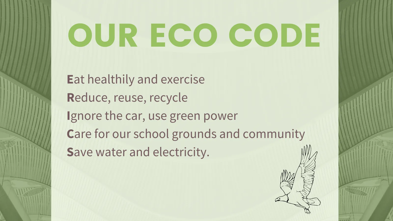 Our Eco code is an acronym of ERIC’s, one of the toy eagles we award to the class who have shown how well they have followed the Eco code: