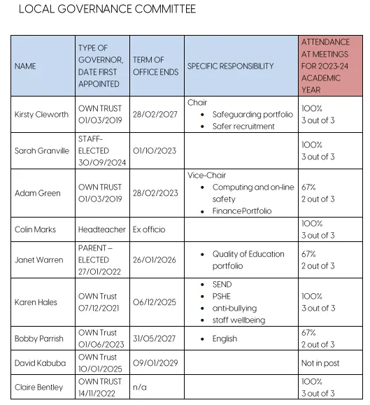 Please click on the link below to view a PDF copy of the OWPS Governor Details for this academic year: