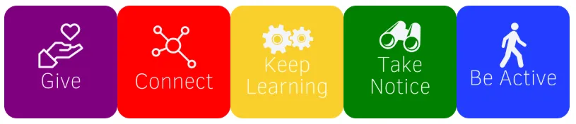 At Orton Wistow Primary School, we know that looking after our mental health and wellbeing is just as important as looking after our physical health. One of the ways we do this is to incorporate the ‘Five Ways to Wellbeing’ into our daily lives at school. The ‘Five Ways to Wellbeing’ is an NHS initiative, along with charities such as Mind, that focuses on ways that we can keep mentally healthy and include: giving to others, keeping learning, being active, connecting to those around us, and taking notice of our surroundings.